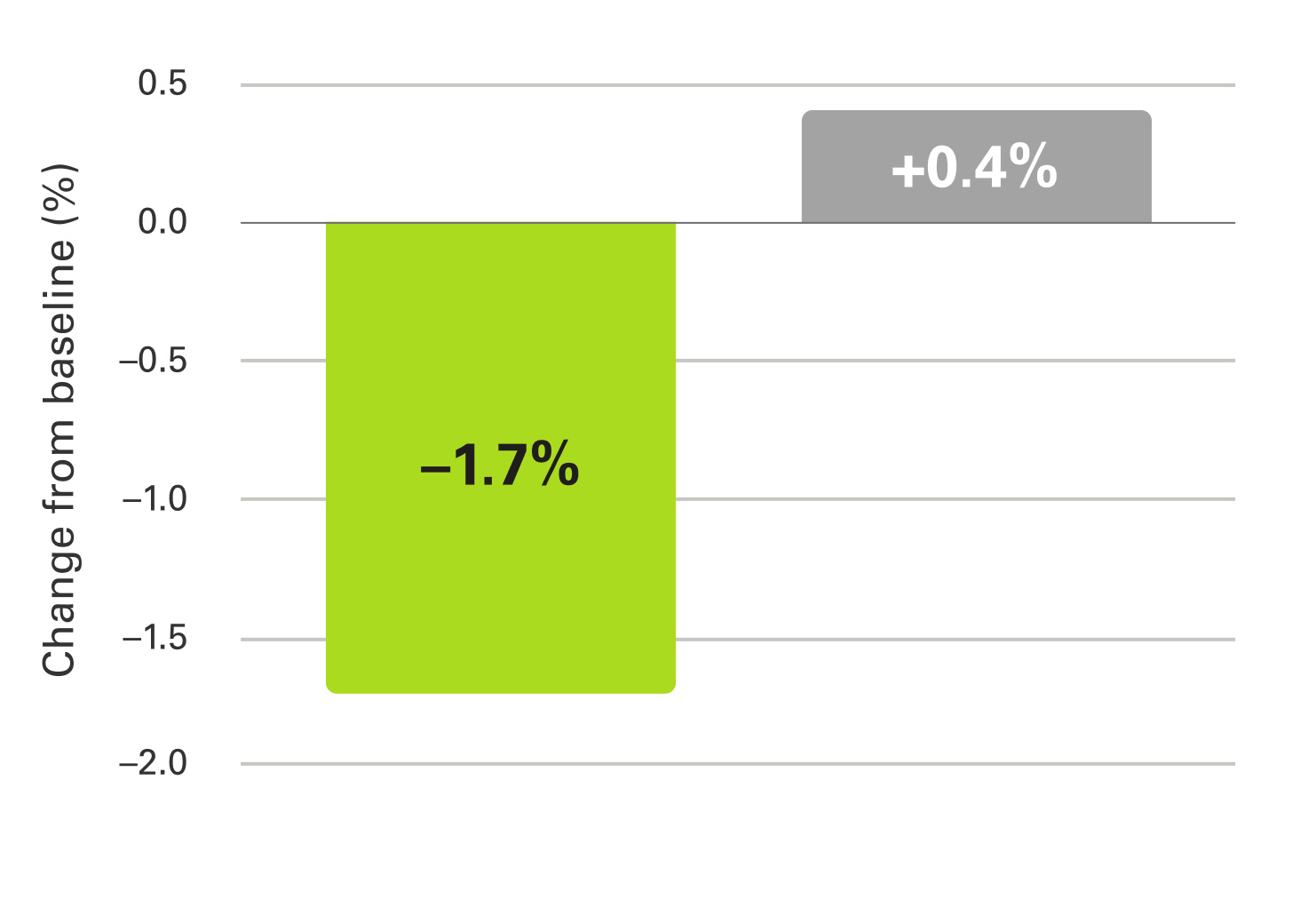 (95% CI: –2.9% to –1.1%; P < 0.0001)1 - Patients treated with daily somatropin achieved a change in trunk percent fat of –3.1 after 38 weeks. No formal statistical comparison between SKYTROFA and daily somatropin was conducted1