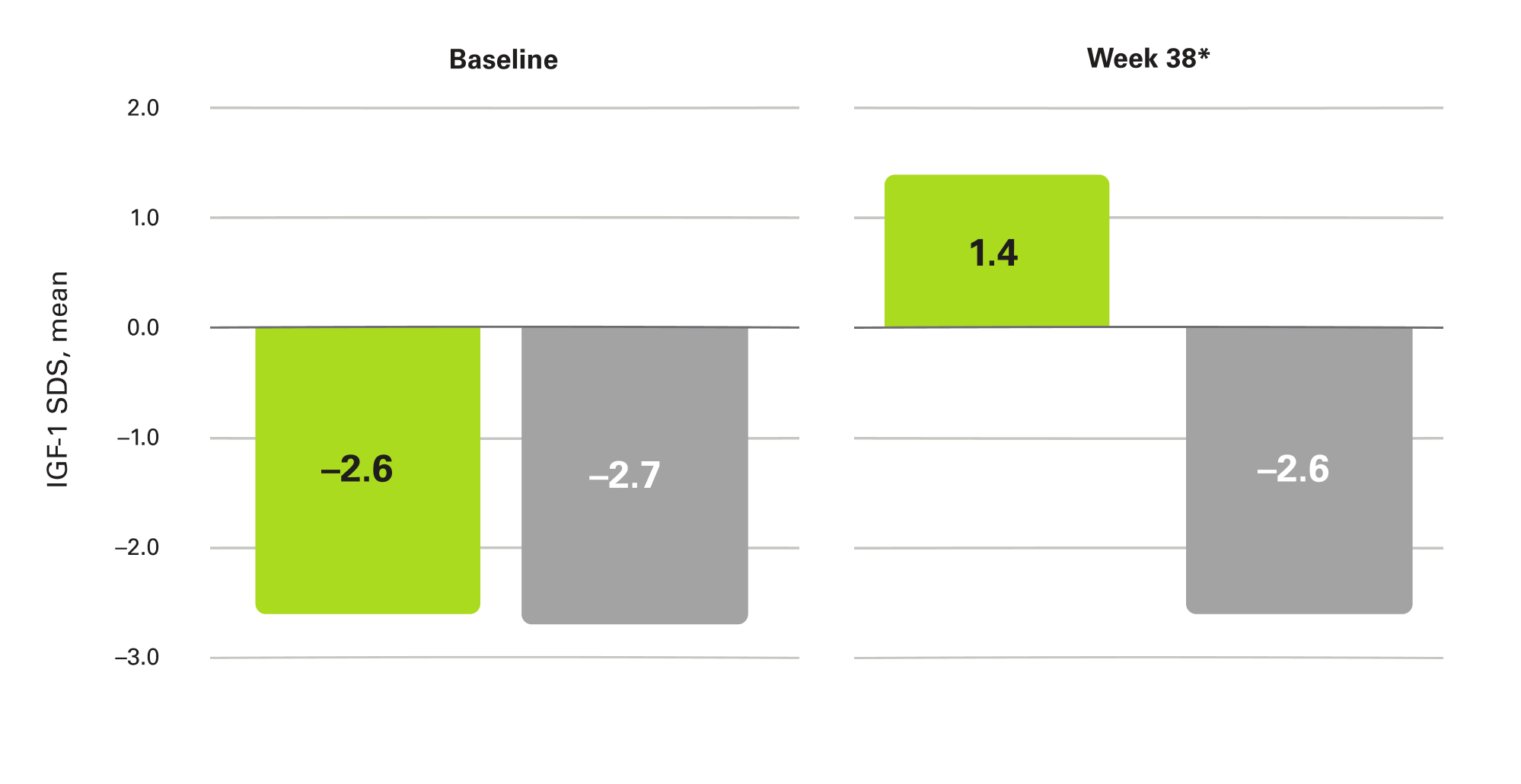 At week 38, treatment with SKYTROFA resulted in normalization of IGF-1 SDS to 1.4, compared with minimal change shown with placebo from a baseline of –2.7 to –2.61