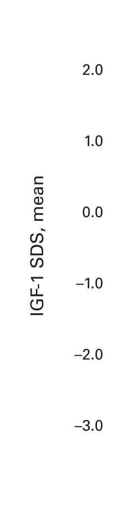 | IGF-1 SDS, mean (SD) | –2.6 (1.0) | –2.7 (1.2) | –2.8 (1.0) |